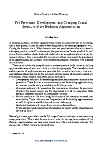 Kovács, Zoltán and Dövényi, Zoltán (2024) The Formation, Development, and Changing Spatial Structure of the Budapest Agglomeration. In: Budapest Past and Future. University of Public Service Ludovika University Press; University of Miskolc, Budapest, pp. 151-176. ISBN 9789636531539; 9789636531546; 9789636531553