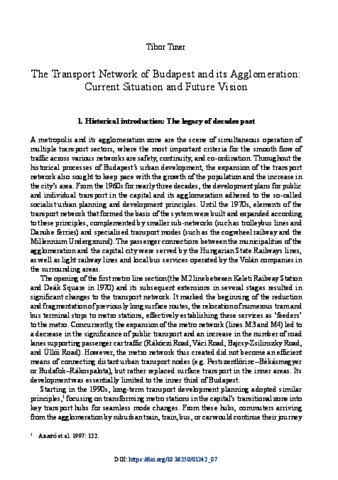 Tiner, Tibor (2024) The transport network of Budapest and its agglomeration : current situation and future vision. In: Budapest Past and Future. University of Public Service Ludovika University Press; University of Miskolc, Budapest, pp. 177-198. ISBN 9789636531539; 9789636531546; 9789636531553