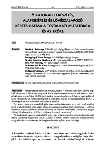 Novák, Attila and Szentgyörgyi, Viktor and Sárkány, Krisztina and Balla, Ivett and Lantos, Zoltán Tibor and Nyakas, Csaba (2025) A katonai felkészítés, alapkiképzés és lövészalapozó képzés hatása a testalkati mutatókra és az erőre = Effects of military preparation program, basic indoctrination, and introductory marksmanship training on somatotype indicators and strenght. HONVÉDORVOS, 77 (1-2). pp. 46-58. ISSN 0133-879X