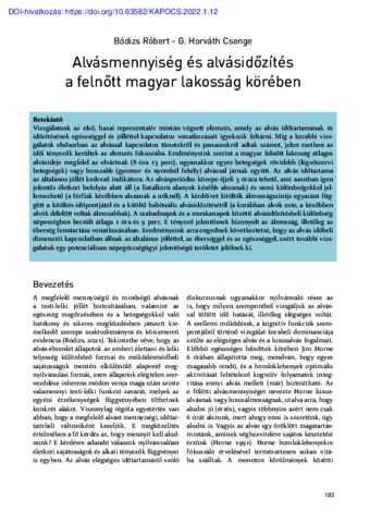 Bódizs, Róbert and G. Horváth, Csenge (2022) Alvásmennyiség és alvásidőzítés a felnőtt magyar lakosság körében. KAPOCS, 5 (1). pp. 103-111. ISSN 1588-7227