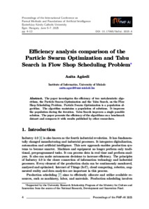 Agárdi, Anita (2025) Efficiency analysis comparison of the Particle Swarm Optimization and Tabu Search in Flow Shop Scheduling Problem. In: Proceedings of the International Conference on Formal Methods and Foundations of Artificial Intelligence. Eszterházy Károly Katolikus Egyetem Líceum Kiadó, Eger, pp. 4-13. ISBN 9789634963035
