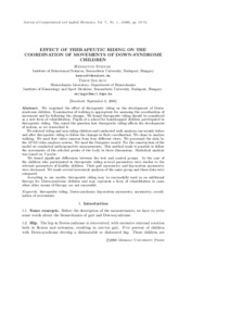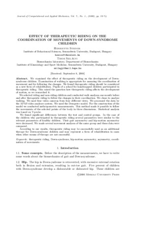 Komoróczki-Steiner, Henriette and Szilágyi, Tibor (2006) Effect of therapeutic riding on the coordination of movements of Down-syndrome children. JOURNAL OF COMPUTATIONAL AND APPLIED MECHANICS, 7 (1). pp. 59-74. ISSN 1586-2070