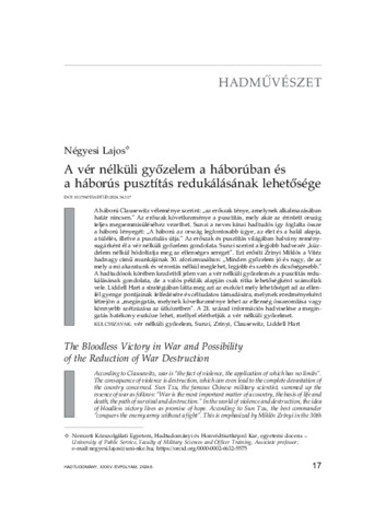 Négyesi, Lajos (2024) A vér nélküli győzelem a háborúban és a háborús pusztítás redukálásának lehetősége = Bloodless Victory in War and Possibility of the Reduction of War Destruction. HADTUDOMÁNY, 34 (3). pp. 17-28. ISSN 1215-4121 (nyomtatott); 1588-0605 (elektronikus)