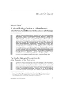A háború Clausewitz véleménye szerint: „az erőszak ténye, amelynek alkalmazásában határ nincsen.” Az erőszak következménye a pusztítás, mely akár az érintett ország teljes megsemmisüléséhez vezethet. Sunzi a neves kínai hadtudós így foglalta össze a háború lényegét: „A háború az ország legfontosabb ügye, az élet és a halál alapja, a túlélés, illetve a pusztulás útja.” Az erőszak és pusztítás világában halvány reménysugárként él a vér nélküli győzelem gondolata. Sunzi szerint a legjobb hadvezér „küzdelem nélkül hódoltatja meg az ellenséges sereget”. Ezt erősíti Zrínyi Miklós a Vitéz hadnagy című munkájának 30. aforizmusában: „Minden győzelem jó és nagy, de az mely a mi akaratunk és vérontás nélkül meglehet, legjobb és szebb és dicsőségesebb.” A hadtudósok körében kezdettől jelen van a vér nélküli győzelem és a pusztítás redukálásának gondolata, de a valós példák alapján csak ritka lehetőségként számoltak vele. Liddell Hart a stratégiában látta meg azt az eszközt mely lehetőséget ad az ellenfél gyenge pontjainak felfedésére és céltudatos támadására, melynek eredményeként létrejön a „megingatás, melynek következménye lehet az ellenség összeomlása vagy könnyebb szétzúzása az ütközetben”. A 21. század információs hadviselése a megingatás hatékony eszköze lehet, mellyel elérhetjük a vér nélküli győzelmet. | According to Clausewitz, war is “the fact of violence, the application of which has no limits”. The consequence of violence is destruction, which can even lead to the complete devastation of the country concerned. Sun Tzu, the famous Chinese military scientist, summed up the essence of war as follows: “War is the most important matter of a country, the basis of life and death, the path of survival and destruction.” In the world of violence and destruction, the idea of bloodless victory lives as promise of hope. According to Sun Tzu, the best commander “conquers the enemy army without a fight”. This is emphasized by Miklós Zrínyi in the 30th
