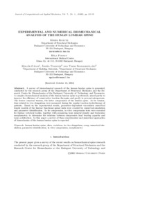 Kurutzné, Kovács Márta and Fornet, Béla and Gálos, Miklós and Tornyos, Árpád and Szabadszállási, Tibor (2006) Experimental and numerical biomechanical analysis of human lumbar spine. JOURNAL OF COMPUTATIONAL AND APPLIED MECHANICS, 7 (1). pp. 23-39. ISSN 1586-2070