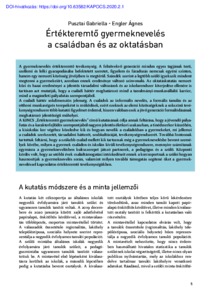 Pusztai, Gabriella and Engler, Ágnes (2020) Értékteremtő gyermeknevelés a családban és az oktatásban = Value-Creating Child Rearing in Family and Education. KAPOCS, 2020 (2). pp. 3-10. ISSN 1588-7227