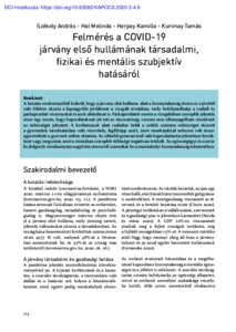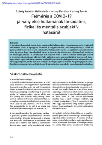 Székely, András and Hal, Melinda and Herpay, Kamilla and Kurimay, Tamás (2020) Felmérés a COVID-19 járvány első hullámának társadalmi, fizikai és mentális hatásáról = Survey on the Subjective Social, Physical and Mental Impacts of the First Wave of the COVID-19 Pandemic. KAPOCS, 3 (3-4). pp. 112-127. ISSN 1588-7227