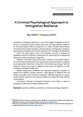 Erdélyi, Ákos and Mágó, Barbara (2025) A Criminal Psychological Approach to Immigration Resilience. MAGYAR RENDÉSZET, 25 (2). pp. 153-161. ISSN 1586-2895