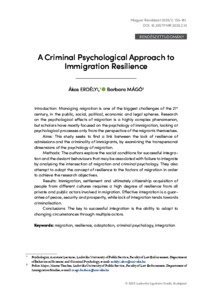 Introduction: Managing migration is one of the biggest challenges of the 21st century, in the public, social, political, economic and legal spheres. Research on the psychological effects of migration is a highly complex phenomenon, but scholars have mostly focused on the psychology of immigration, looking at psychological processes only from the perspective of the migrants themselves. Aims: This study seeks to find a link between the lack of resilience of admissions and the criminality of immigrants, by examining the transpersonal dimensions of the psychology of migration. Methods: The authors explore the social conditions for successful integration and the deviant behaviours that may be associated with failure to integrate by analysing the intersection of migration and criminal psychology. They also attempt to adapt the concept of resilience to the factors of migration in order to achieve the research objectives. Results: Immigration, settlement and ultimately citizenship acquisition of people from different cultures requires a high degree of resilience from all private and public actors involved in migration. Effective integration is a guarantee of peace, security and prosperity, while lack of integration tends towards criminalisation. Conclusions: The key to successful integration is the ability to adapt to changing circumstances through multiple actors.
