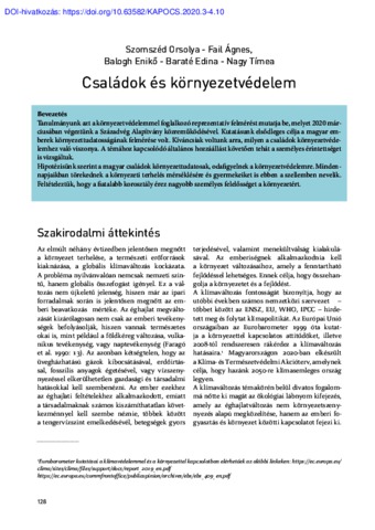 Szomszéd, Orsolya and Fail, Ágnes and Balogh, Enikő and Baraté, Edina and Nagy, Tímea (2020) Családok és környezetvédelem. KAPOCS, 3 (3-4). pp. 128-152. ISSN 1588-7227