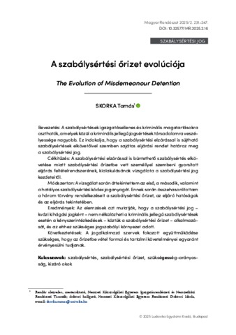 Skorka, Tamás (2025) A szabálysértési őrizet evolúciója = The Evolution of Misdemeanour Detention. MAGYAR RENDÉSZET, 25 (2). pp. 231-247. ISSN 1586-2895