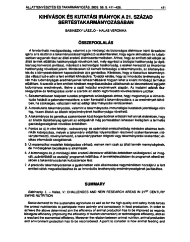 A fenntartható mezőgazdaság, valamint a jó minőségű és biztonságos élelmiszer iránti társadalmi igény arra ösztönzi a tal<armányozással foglalkozó szakembereket, hogy egyre aktívabban és tudatosabban vegyenek részt az állati eredetű élelmiszertermelésben. Ahhoz, hogy az említett célt elérjük az állati termék előállítás hatékonyságát növelnünk kell, mely egyrészt a biológiai hatékonyság (a táplálóanyag konverzió javítása), másrészt a technológiai hatékonyság, s ezeken keresztül az ökonómiai hatékonyság növelését jelenti. Mindezeken túl kiemelt fontosságú a takarmányozás, az állattenyésztés és a környezetvédelem kapcsolatának újra gondolása. Kérdéses, hogy a klasszikus takarmányozás választ tud-e adni a fent említett kihívásokra. További kérdés, hogy az innovációs tevékenység során más tudományágak eredményeinek felhasználásával hogyan lehet a kívánt minőségű terméket előállítani. A szerzők a fent említett kérdések megválaszolására vállalkoznak az idevonatkozó legújabb tudományos eredmények, illetve a saját kutatási eredményeik alapján. Az irodalmi adatok öszszegyűjtése és feldolgozása során a szerzők az alábbi legfontosabb következtetésre jutottak; 1. Szisztematikusan felépített kutatási programok szükségesek ahhoz, hogy megismerjük a klímaváltozás hatását a gabonatermesztésre, s ezen keresztül a takarmányozásra; s az eredmények tükrében, ha szükséges, változtatni kell az eddigi takarmányozási rendszereken. 2. A molekuláris takarmányozási, valamint a takarmányozás-immunológiai kutatások jelentősége nőni fog, hiszen általuk az állatok teljesítményének hatékonysága növelhető. 3. Atakarmányos és genetikus szakemberek közti kooperációnak erősödni kell annak érdekében, hogy az állatok táplálóanyag igényét az eddigieknél még pontosabban lehessen kielégíteni a termelés gazdaságosságának növelése érdekében. 4. Fontos az új in vitro fehérje-, szárazanyag- és szénhidrát-emészthetőség mérésére alkalmas technikák kidolgozása, melyek a takarmány előállítás folyamatában résztvevő szakembereknek (növénytermesztő, növénynemesítő, a takarmányiparban dolgozó vagy takarmányozási szakember) értékes információt szolgáltatnak. 5. Új matematikai modellek kidolgozása várható, melyek nem csak az állati termék mennyiségének, de minőségének becslésére is alkalmasak. 6. A biztonságos és jó minőségű állati eredetű élelmiszer előállítás érdekében szükségszerű az integrált „szántóföldtől az asztalig" programok felállítása. A termékfejlesztésben és programok ellenőrzésében a takarmányozásnak kulcsszerepe lesz. 7. A precíziós takarmányozásnak a gyakorlatban való alkalmazása nagymértékben hozzájárul a fent említett célok megvalósításához és az innovációs tevékenység eredményességének javításához.