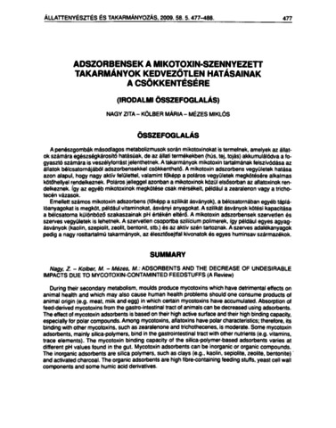 Nagy, Zita and Kölber, Mária and Mézes, Miklós (2009) Adszorbensek a mikotoxin-szennyezett takarmányok kedvezőtlen hatásainak a csökkentésére. ÁLLATTENYÉSZTÉS ÉS TAKARMÁNYOZÁS, 58 (5). pp. 477-488. ISSN 0230-1814