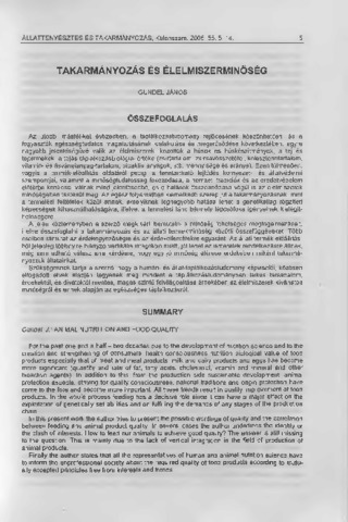 Az utóbbi másfél-két évtizedben, a táplálkozástudomány fejlődésének köszönhetően, és a fogyasztók egészségtudatos magatartásának kialakulása és megerősödése következtében, egyre nagyobb jelentőségűvé válik az élelmiszerek, közöttük a húsok és húskészítmények, a tej és tejtermékek, a tojás táplálkozásbiológiai értéke (zsírtartalom, zsírsavösszetétel, koleszterintartalom, vitamin- és ásványianyag-tartalom, bioaktív anyagok, stb. mennyisége és aránya). Ezen túlmenően, vagyis a termék-előállítás oldaláról pedig, a fenntartható fejlődés környezet-, és állatvédelmi szempontjai, valamint a minőségtudatosság fokozódása, a nemzeti tradíciók és az eredetvédelem előtérbe kerülése, válnak mind jelentősebbé, és e hatások összeadódása végül is az élelmiszerek minőségében testesül meg. Az egész folyamatban kiemelkedő szerep jut a takarmányozásnak, mint a termelési feltételek közül annak, amelyiknek legnagyobb hatása lehet a genetikailag rögzített képességek kihasználhatóságára, illetve, a termelési lánc bármely lépcsőfoka igényeinek kielégíthetőségére. A jelen közleményben a szerző megkísérli bemutatni a minőség lehetséges megfogalmazásait, illetve összefoglalni a takarmányozás és az állati termékminőség közötti összefüggéseket. Több esetben rámutat az érdekegyezőségre és az érdekellentétekre egyaránt. Az állati termék előállításból jelenleg többnyire hiányzó vertikális integráció miatt, jól lehet az ismeretek rendelkezésre állnak, még sem adható válasz arra kérdésre, hogy egy jó minőség elérése érdekében miként takarmányozzuk állatainkat. Szükségesnek tartja a szerző, hogy a humán- és állat-táplálkozástudomány képviselői, közösen elfogadott elvek alapján tegyenek meg mindent a táplálkozástudományban laikus társadalom, érdekektől, és divatoktól mentes, magas szintű felvilágosítása érdekében az élelmiszerek kívánatos minőségről és ennek alapján az egészséges táplálkozásról.