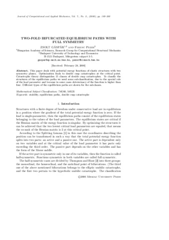 Gáspár, Zsolt and Pezer, Ferenc (2006) Two-fold bifurcated equilibrium paths with full symmetry. JOURNAL OF COMPUTATIONAL AND APPLIED MECHANICS, 7 (2). pp. 189-200. ISSN 1586-2070