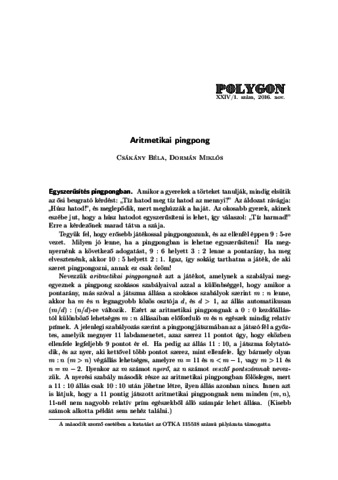 Csákány, Béla and Dormán, Miklós (2016) Aritmetikai pingpong. POLYGON, Matematikai, szakdidaktikai Közlemények, 24 (1). pp. 13-24.