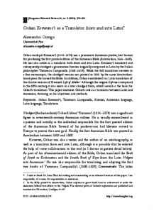 Orengo, Alessandro (2025) Oskan Erewanc‘i as a Translator from and into Latin. THE HUNGARIAN HISTORICAL REVIEW, 14 (2). pp. 274-291. ISSN 2063-8647 (print); 2063-9961 (online)