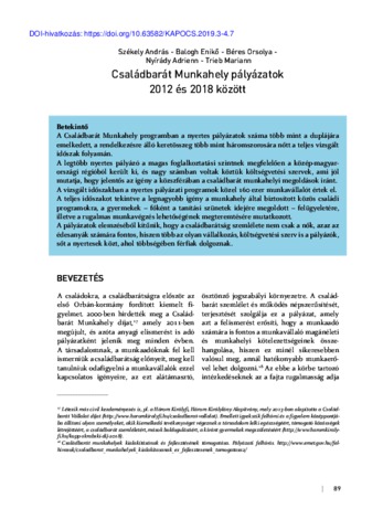 Székely, András and Balogh, Enikő and Béres, Orsolya and Nyírády, Adrienn and Trieb, Mariann (2019) Családbarát Munkahely pályázatok 2012 és 2018 között. KAPOCS, 2019 3. pp. 89-104. ISSN 1588-7227
