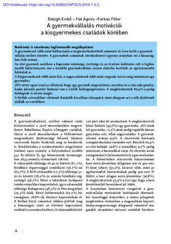 Balogh, Enikő and Fail, Ágnes and Farkas, Péter (2019) A gyermekvállalás motivációi a kisgyermekes családok körében. KAPOCS, 2 (1-2). pp. 18-32. ISSN 1588-7227