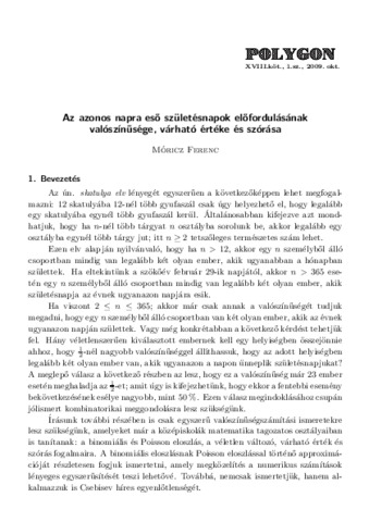 Móricz, Ferenc (2009) Az azonos napra eső születésnapok előfordulásának valószínűége, várható értéke és szórása. POLYGON, Matematikai, szakdidaktikai Közlemények, 18 (1). pp. 7-32.