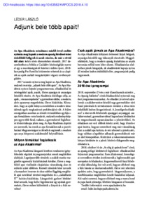 Léder, László (2018) Adjunk bele több apait! KAPOCS, 1 (4). ISSN 1588-7227