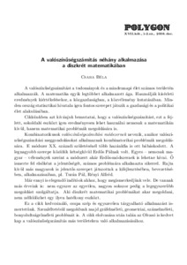 Csaba, Béla (2008) A valószínűségszámítás néhány alkalmazása a diszkrét matematikában. POLYGON, Matematikai, szakdidaktikai Közlemények, 17 (1-2). pp. 41-61.