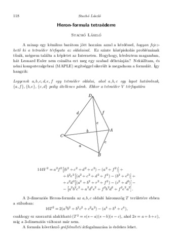 Stachó, László (2008) Heron-formula tetraéderre. POLYGON, Matematikai, szakdidaktikai Közlemények, 17 (1-2). pp. 118-124.