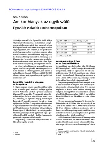 Nagy, Anna (2018) Amikor hiányzik az egyik szülő : Egyszülős családok a mindennapokban. KAPOCS, 1 (2). pp. 39-42. ISSN 1588-7227