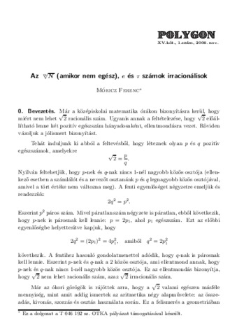 Móricz, Ferenc (2006) Az m√N (amikor nem egész), e és π számok irracionálisok. POLYGON, Matematikai, szakdidaktikai Közlemények, 15 (1). pp. 25-42.
