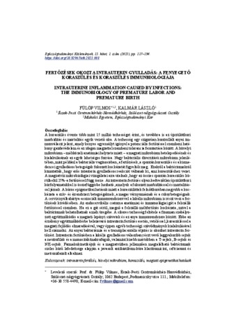Fülöp, Vilmos and Kalmár, László (2025) Fertőzések okozta intrauterin gyulladás: a fenyegető koraszülés és koraszülés immunbiológiája = Intrauterine inflammation caused by infections: the immunobiology of premature labor and premature birth. EGÉSZSÉGTUDOMÁNYI KÖZLEMÉNYEK: A MISKOLCI EGYETEM KÖZLEMÉNYE, 15 (1). pp. 117-134. ISSN 2063-2142