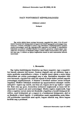Csirmaz, László (2006) Nagy pontosságú képfeldolgozás. ALKALMAZOTT MATEMATIKAI LAPOK, 23. pp. 85-98. ISSN 0133-3399