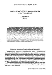 Tóth, Mihály (2006) Alapvető matematikai transzformációk a kriptográfiában. ALKALMAZOTT MATEMATIKAI LAPOK, 23. pp. 405-432. ISSN 0133-3399
