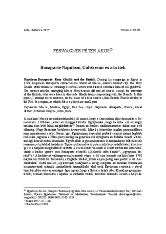 Ferwagner, Péter Ákos (2025) Bonaparte Napóleon, Gáleb emír és a britek. ACTA HISTORICA (SZEGED), 149. pp. 61-71. ISSN 0324-6965