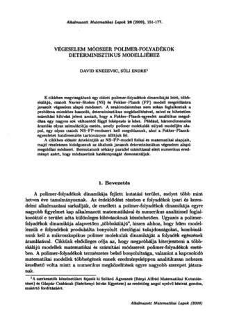 E cikkben megvizsgálunk egy oldott polimer-folyadékok dinamikáját leíró, többskálájú, csatolt Navier-Stokes (NS) és Fokker-Planck (FP) modell megoldására javasolt végeselem alapú módszert. A szakirodalomban nem sokan foglalkoztak a probléma mienkhez hasonló, determinisztikus megközelítésével, mivel ez hihetetlen számítási kihívást jelent amiatt, hogy a Fokker-Planck-egyenlet analitikus megoldása egy nagyon sok változótól függő leképezés is lehet. Például, háromdimenziós áramlás olyan szimulációja esetén, amely polimer molekulák súlyzó modelljén alapul, egy olyan csatolt NS-FP-rendszert kell megoldanunk, ahol a Fokker-Planckegyenletet hatdimenziós tartományon állítjuk fel. A cikkben először áttekintjük az NS-FP-modell fizikai és matematikai alapjait, majd részletesen kidolgozzuk az általunk javasolt determinisztikus végeselem alapú megoldási módszert. Bemutatunk néhány parallel számítással elért numerikus eredményt azért, hogy módszerünk hatékonyságát demonstráljuk.