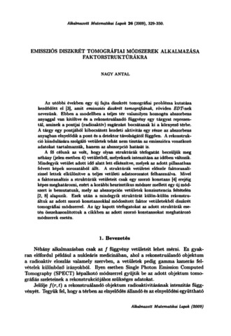 Nagy, Antal (2009) Emissziós diszkrét tomográfiái módszerek alkalmazása faktorstruktúrákra. ALKALMAZOTT MATEMATIKAI LAPOK, 26. pp. 329-350. ISSN 0133-3399