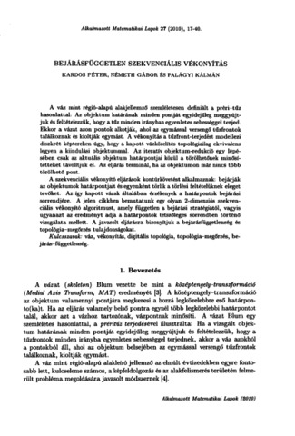 Kardos, Péter and Németh, Gábor and Palágyi, Kálmán (2010) Bejárásfüggetlen szekvenciális vékonyítás. ALKALMAZOTT MATEMATIKAI LAPOK, 27. pp. 17-40. ISSN 0133-3399