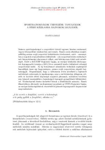 Csató, László (2020) Sportbajnokságok tervezése: tanulságok a férfi kézilabda bajnokok ligájából. ALKALMAZOTT MATEMATIKAI LAPOK, 37 (2). pp. 157-166. ISSN 0133-3399