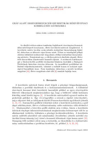 Gera, Imre and London, András (2020) Gráf alapú dimenzióredukciós heurisztikák részvénypiaci korrelációs mátrixokra. ALKALMAZOTT MATEMATIKAI LAPOK, 37. pp. 211-224. ISSN 0133-3399