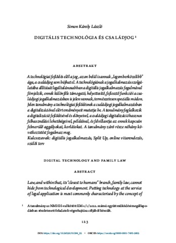 Simon, Károly László (2025) Digitális technológia és családjog. In: A fenntartható és digitális belső piac aktuális kérdései. Ludovika Egyetemi Kiadó, Budapest, pp. 123-142. ISBN 9789636532161