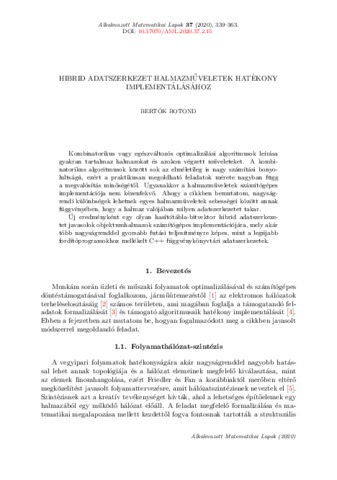 Bertók, Botond (2020) Hibrid adatszerkezet halmazműveletek hatékony implementálásához. ALKALMAZOTT MATEMATIKAI LAPOK, 37. pp. 339-363. ISSN 0133-3399