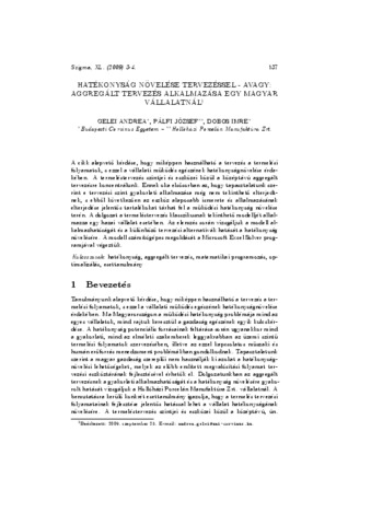 Gelei, Andrea and Pálfi, József and Imre, Dobos (2009) Hatékonyság növelése tervezéssel - avagy: aggregált tervezés alkalmazása egy magyar vállalatnál. SZIGMA, 40 (3-4). pp. 137-156. ISSN 0039-8128