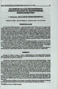 A szerzők 62 különböző genotípusú - angus (A), charolais (CH), holsteln-fríz (HF), magyar szürke (MSZ), magyar tarka (MT), charolais x magyar szürke (CH x MSZ) - növendékbika hizlalási és vágási teljesítményét hasonlították össze. Az állatokat azonos módon takarmányozták, ad lib. silókukoricaszilázsra és fűszénára alapozva. A hizlalás elején 2 kg, a hizlalás végén 4 kg abrakkeveréket kaptak az állatok. A 450 kg-os élősúly elérése után a hízótáp 25%-ban lenmagdara kiegészítést tartalmazott. Az állatok vágása átlagosan 600 kg élősúlyban történt. A hizlalás alatti súlygyarapodásban a fajták sorrendje a következők szerint alakult: A; 1240 g/nap; CH: 1148 g/nap; CHxMSZ: 1097 g/nap; MT: 1021 g/nap; HF: 980 g/nap; MSZ: 897 g/nap. Az eredmények azt igazolták, hogy tömegtakarmányra alapozott hizlalás esetén, a nagyobb teljesítőképességű fajták (CH, MT) a növekedési erélyben nem tudják kihasználni genetikai képességeiket. Ugyanakkor ismételten igazolódott, hogy a CH keresztezés hatására a MSZ súlygyarapodása számottevően javul. A EUROP minősítés szerint a hasított féltestek izmoltsági pontszámban a CH (9,50) és a MT (9,33) szignifikánsan felülmúlta a többi genotípust, míg legnagyobb faggyússági pontszáma az A (8,33) és a CH X MSZ (7,33) bikáknak volt. A vágási hozam esetében a CH (59,50%) és a MT (57,84%) szignifikánsan felülmúlta a MSZ (55,13%) és a HF (55,03%) fajtájú bikák vágási százalékát. A vesefaggyú mennyisége és aránya a EUROP faggyússági ponttal megegyező tendenciát mutatott. Ósszességében megállapítható, hogy azonos tartási és takarmányozási körülmények ellenére a hízékonysági és a vágási tulajdonságokban szignifikáns különbségek álltak fenn a fajták között.