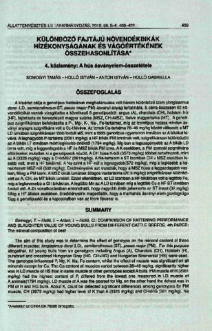Somogyi, Tamás and Holló, István and Anton, István and Holló, Gabriella (2010) Különböző fajtájú növendék bikák hízékonyságának és vágóértékének összehasonlítása. 4. Közlemény : A hús ásványelem-összetétele. ÁLLATTENYÉSZTÉS ÉS TAKARMÁNYOZÁS, 59 (5-6). pp. 409-422. ISSN 0230-1814