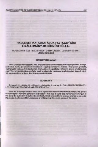 Mivel a legtöbb hal utódszáma más tenyésztett állatainkhoz képest sok nagyságrenddel is magasabb lehet, ezért a genetikai beavatkozások itt - egyik generációról a másikra - lényegesen gyorsabb, hatékonyabb változásokat okozhatnak. Munkánkban megpróbáljuk felvázolni azokat az eljárásokat, eredményeket, problémákat, amiket a halak tenyésztésbe vonása során alkalmaztak, és amik növelték, vagy veszélyeztették az állományok genetikai értékét.