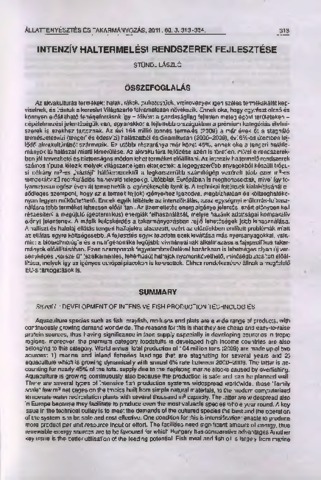 Stündl, László (2011) Intenzív haltermelési rendszerek fejlesztése. ÁLLATTENYÉSZTÉS ÉS TAKARMÁNYOZÁS, 60 (3). pp. 313-334. ISSN 0230-1814