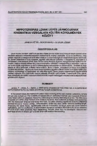 Jámbor, Péter and Bokor, Árpád and Stefler, József (2011) Hippoterápiás lovak lépés jármódjának kinematikai vizsgálata kültéri körülmények között. ÁLLATTENYÉSZTÉS ÉS TAKARMÁNYOZÁS, 60 (4). pp. 337-353. ISSN 0230-1814