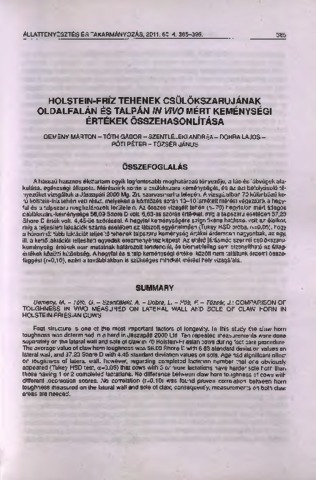 Demény, Márton and Tóth, Gábor and Szentléleki, Andrea and Dobra, Lajos and Póti, Péter and Tőzsér, János (2011) Holstein-fríz tehenek csülökszarujának oldalfalán és talpán in vivo mért keménységi értékek összehasonlítása. ÁLLATTENYÉSZTÉS ÉS TAKARMÁNYOZÁS, 60 (4). pp. 385-395. ISSN 0230-1814
