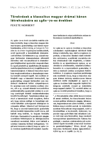 Fekete, Norbert (2024) Törekvések a klasszikus magyar drámai kánon létrehozására az 1960‒70-es években. THEATRON: SZÍNHÁZTUDOMÁNYI PERIODIKA, 18 (3). pp. 105-118. ISSN 1418-9941
