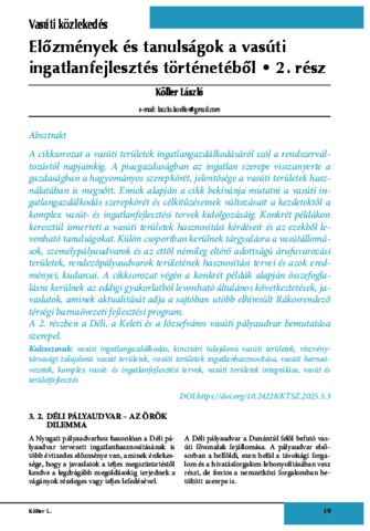 Köller, László (2025) Előzmények és tanulságok a vasúti ingatlanfejlesztés történetéből (2. rész). KÖZLEKEDÉSTUDOMÁNYI SZEMLE, 75 (5). pp. 19-29. ISSN 0023-4362