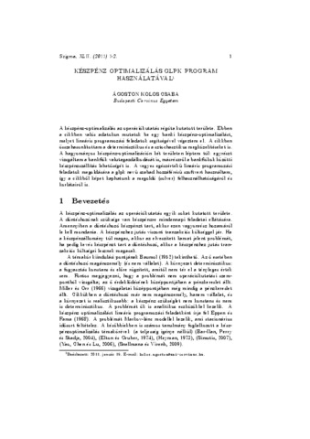 Ágoston, Kolos Csaba (2011) Készpénz optimalizálás GLPK program használatával. SZIGMA, 42 (1-2). pp. 1-19. ISSN 0039-8128